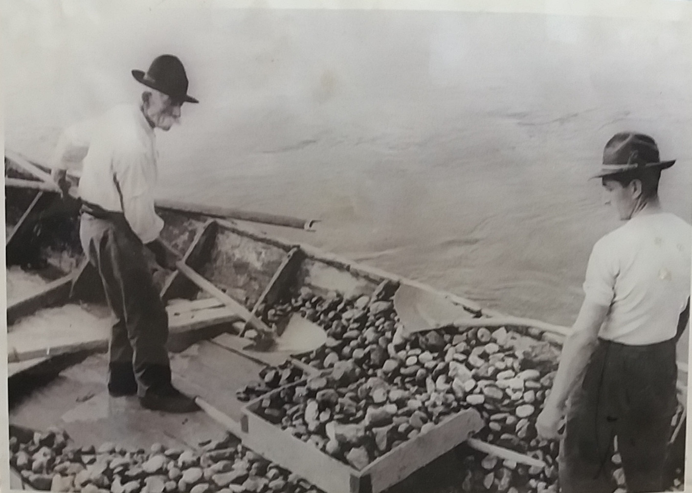 A quei tempi il lavoro dell’estrattore di ghiaia e sabbia (gerì), era molto duro: bisognava portare la barca nel punto scelto per l’estrazione, estrarre il materiale dall’alveo del fiume, caricarlo sulla barca, e portarlo al punto di scarico.